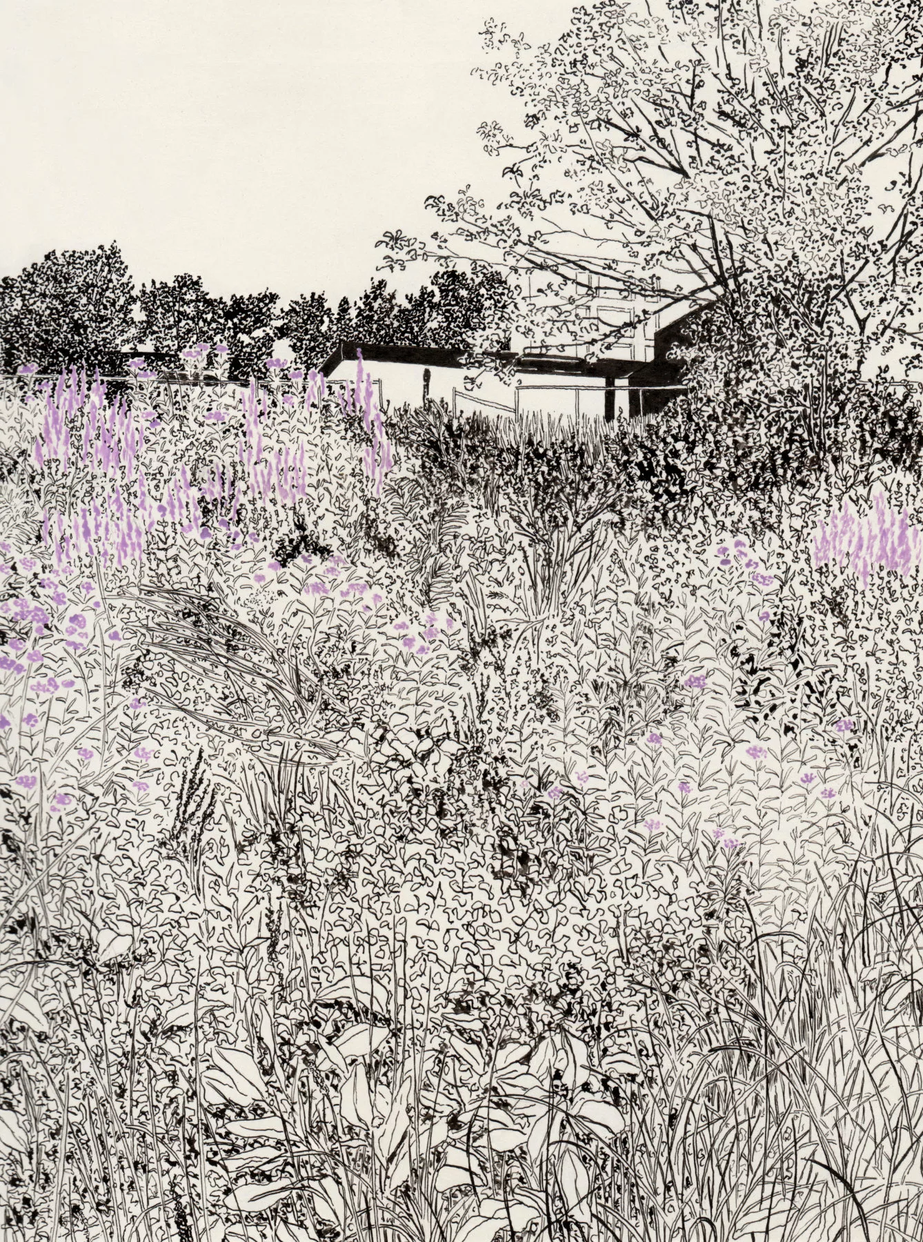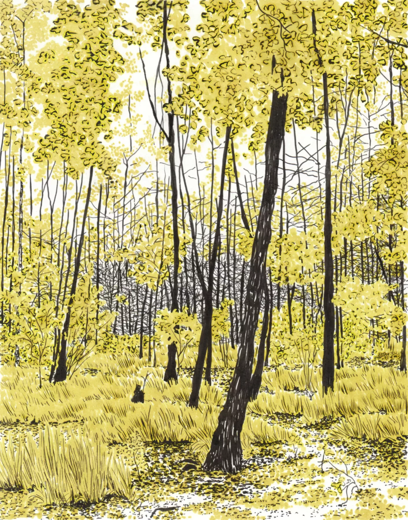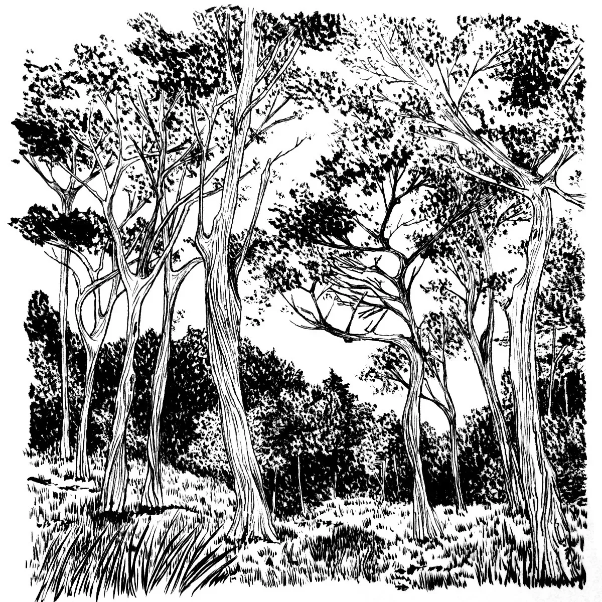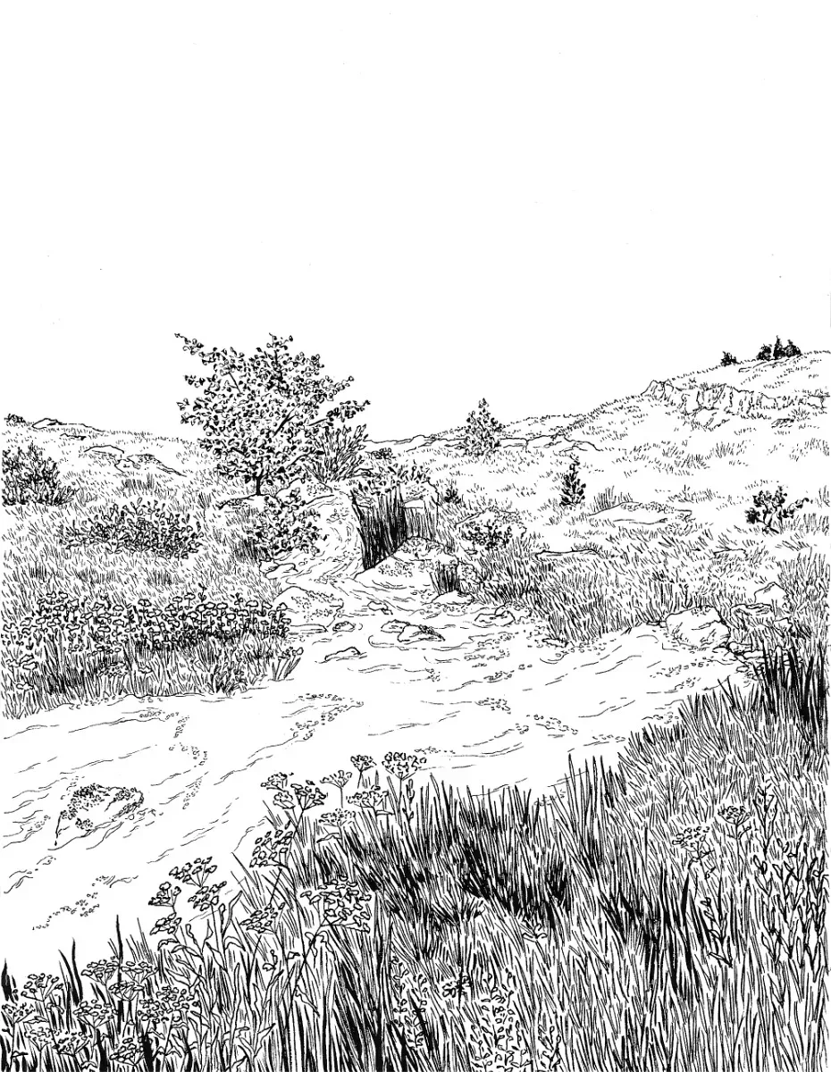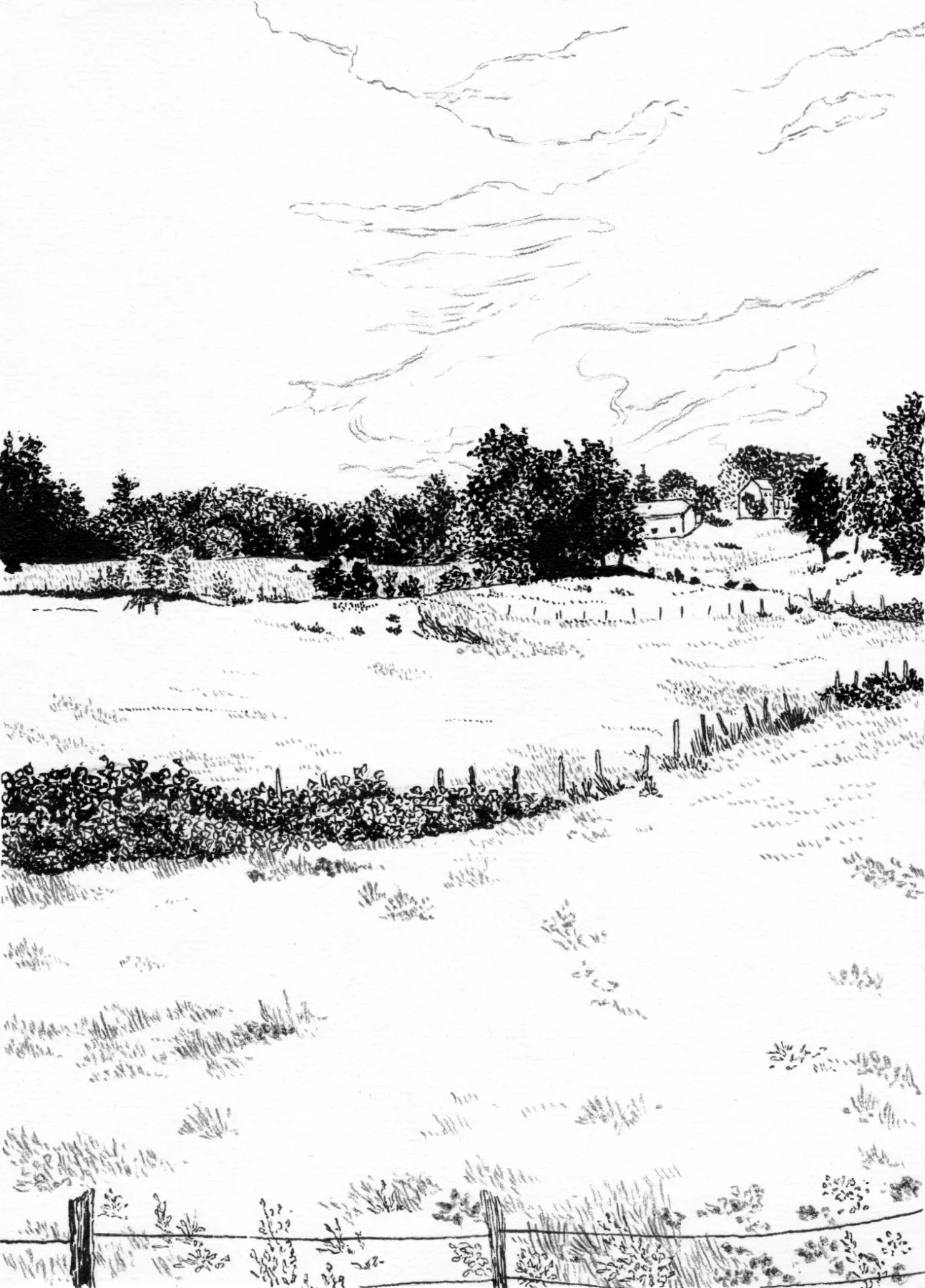 landscape drawing made with black ink