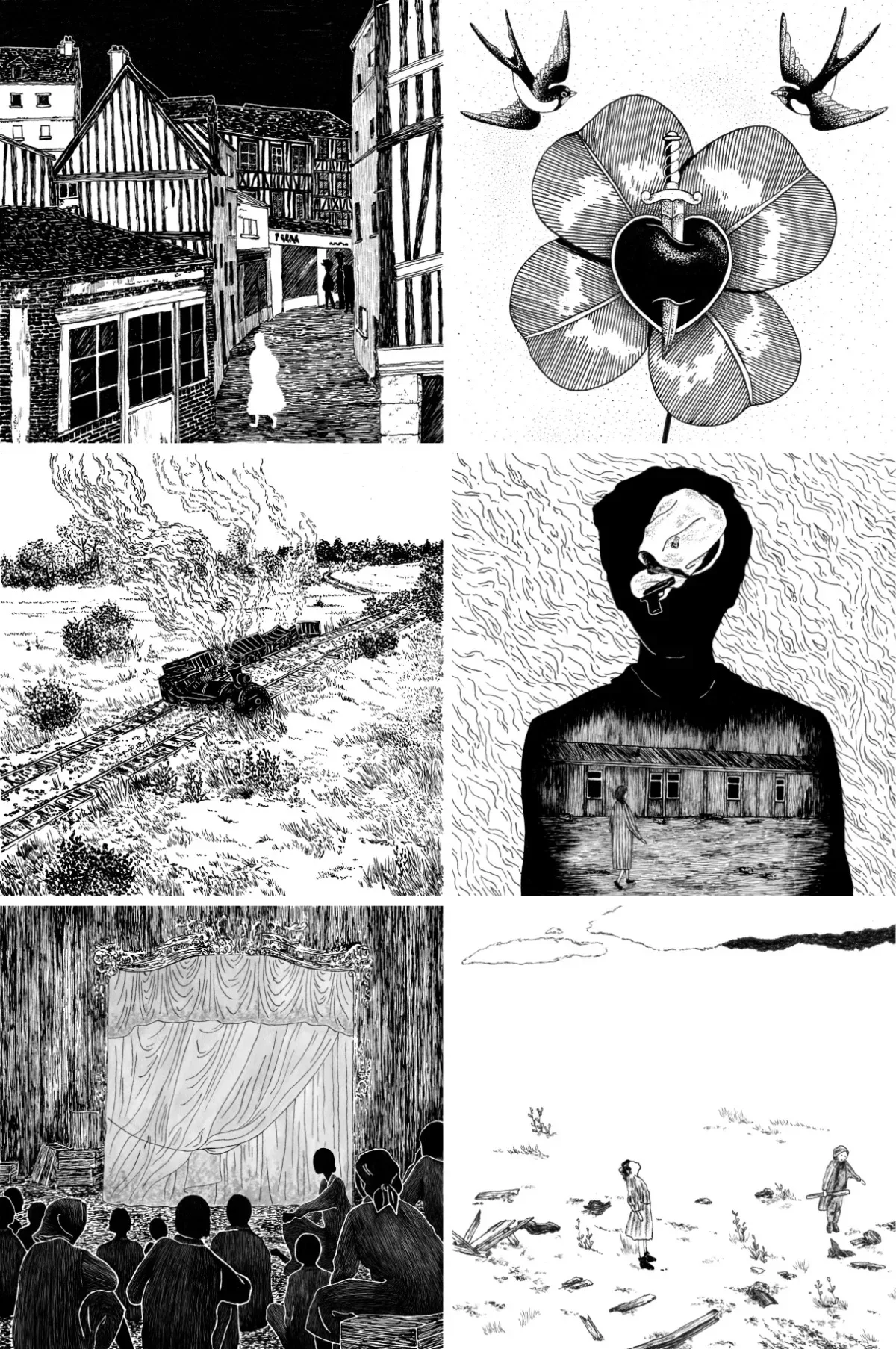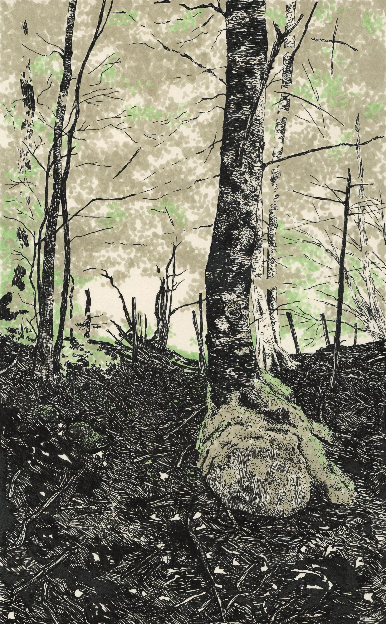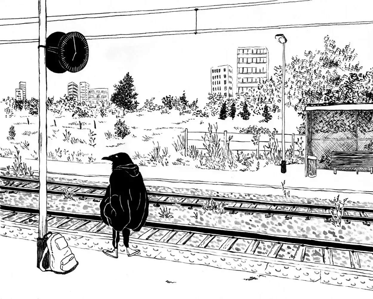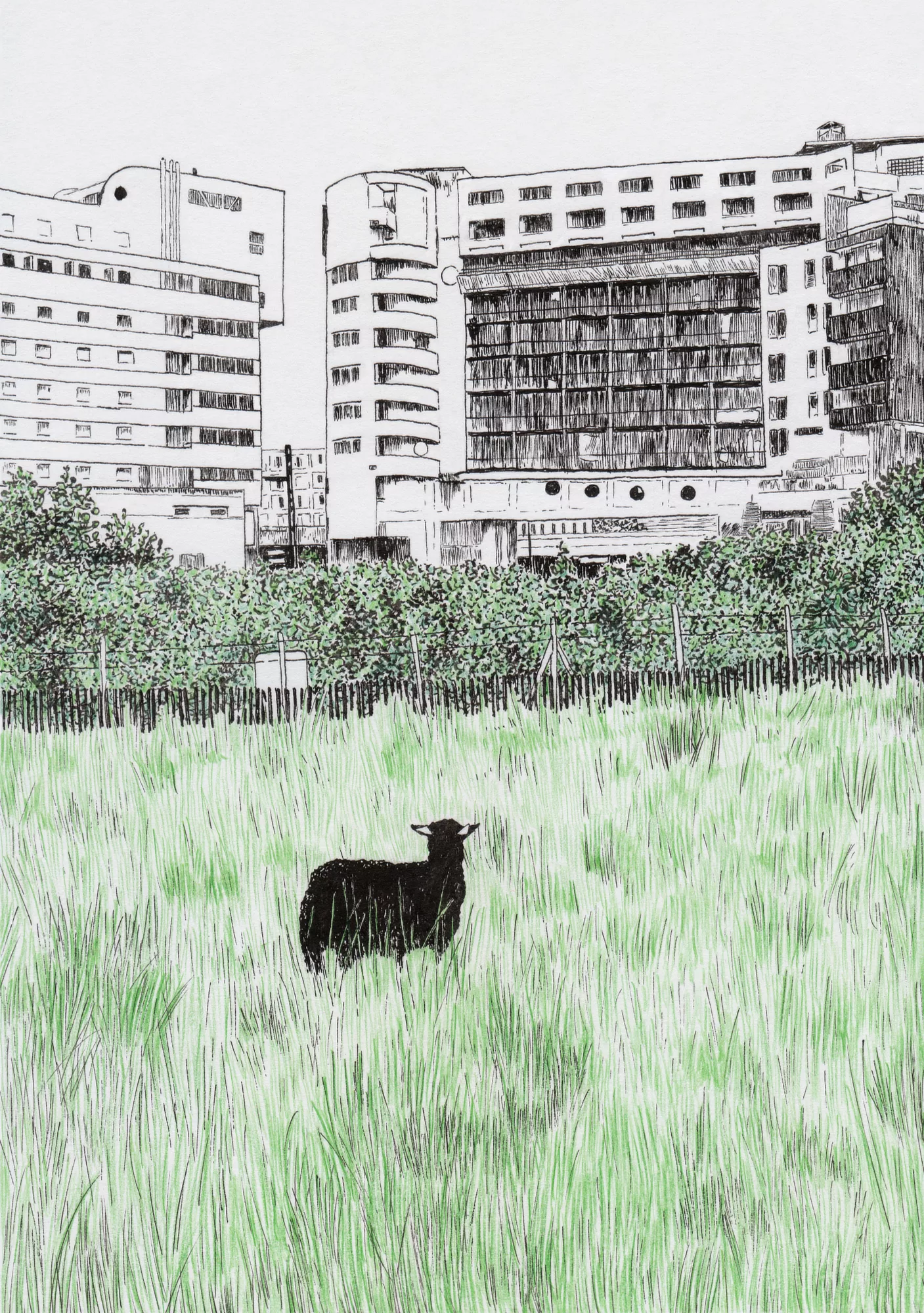 landscape drawing made with black ink